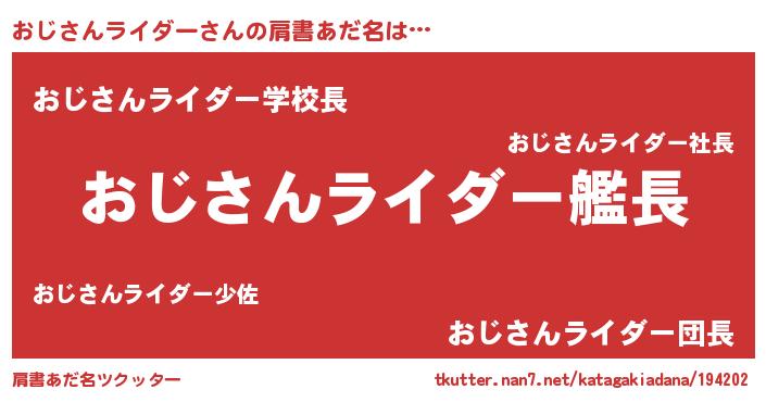 | ヒーロー風カッコイイあだ名 | 『正義の使者おじさんライダー』 |