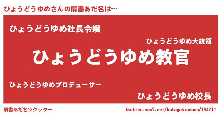 | ヒーロー風カッコイイあだ名 | 『仮面ヒョダー』『ネオヒョウドウユメ』 |