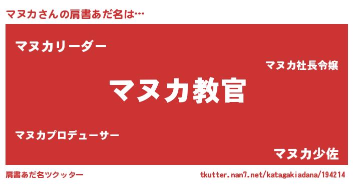 | 意味不明あだ名 | 『住所不定無職マヌカ(3歳)』 |
