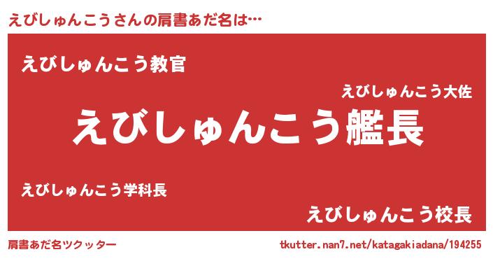 | ヒーロー風カッコイイあだ名 | 『仮面エビダー』『ネオエビシュンコウ』 |