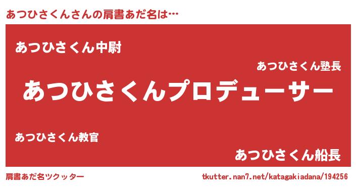 | 男性向けラノベタイトル風あだ名 | 『はたらくあつひさくんさま!』 |