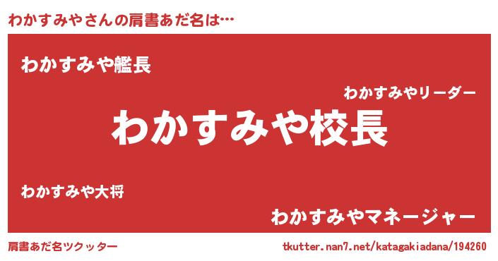 | 胡散臭い通販商品みたいなあだ名 | 『絶対に幸福をもたらす健康食品…その名も「わかすみや」』 |