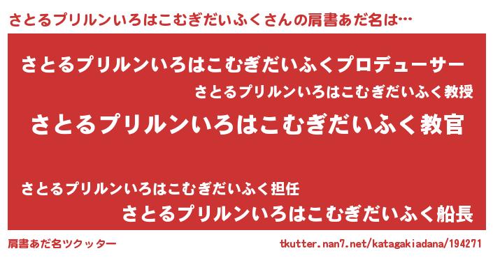| ヘコむあだ名 | 『さとるプリルンいろはこむぎだいふく(小並感)』 |