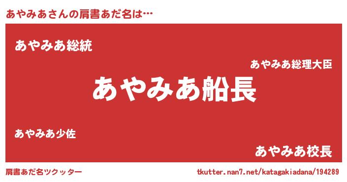 | 意味不明あだ名 | 『自称あやみあ』『永久保存あやみあ』 |