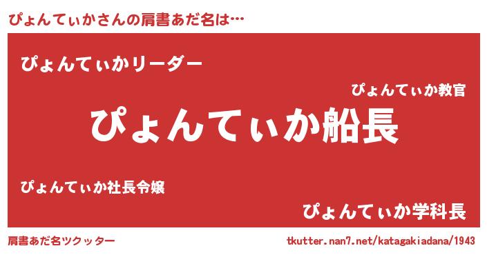 | 胡散臭い通販商品みたいなあだ名 | 『信頼と実績のサプリメント…その名も「ぴょんてぃか」』 |