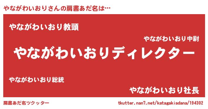 | ヘコむあだ名 | 『やながわいおり(笑)』『やなふぇ~』 |