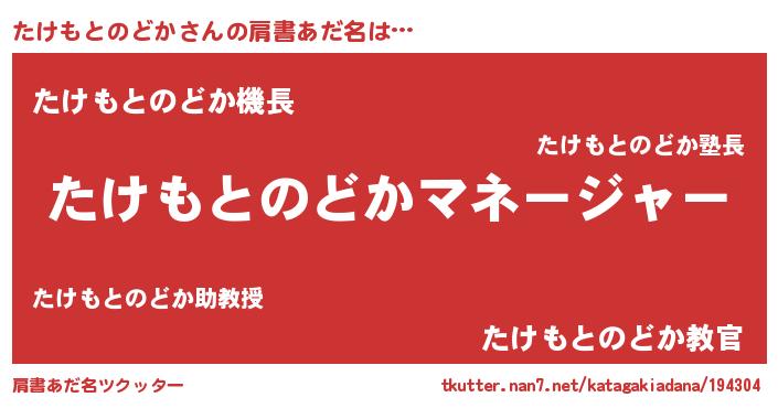 | ヘコむあだ名 | 『たけを』『たけもとのどか(遠い目)』 |