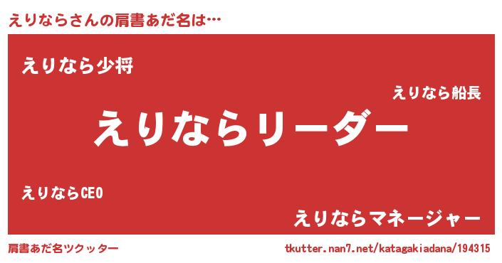 | 意味不明あだ名 | 『とにかく怪しいえりなら』 |
