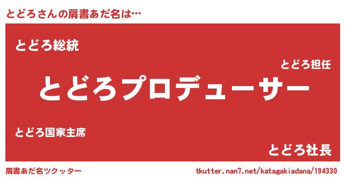 | 可愛いあだ名 | 『とどうちぇる』『とんとん』 |