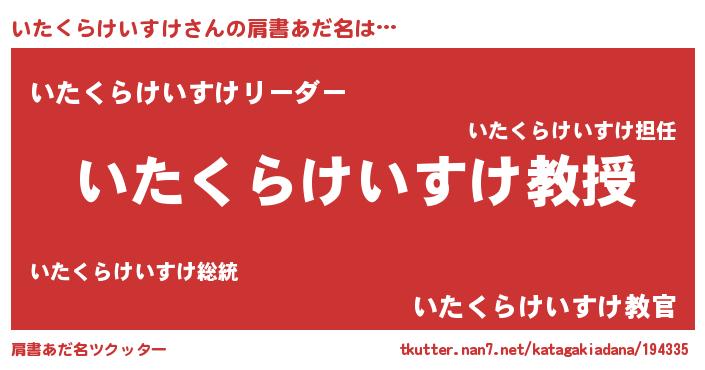 | ヘコむあだ名 | 『いたお』『いたくらけいすけ(遠い目)』 |
