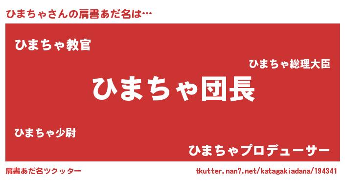 | 意味不明あだ名 | 『とにかく怪しいひまちゃ』 |