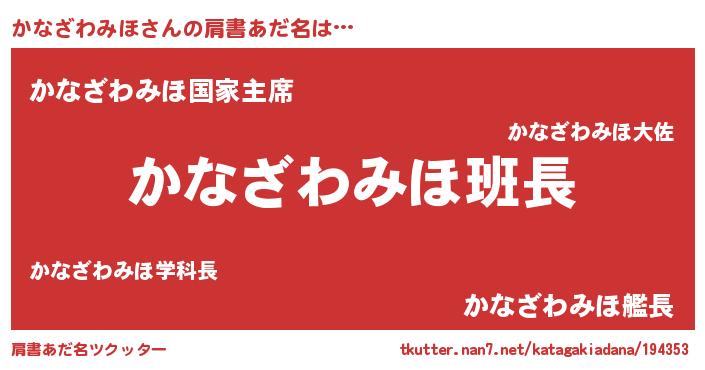 | 意味不明あだ名 | 『とにかく怪しいかなざわみほ』 |