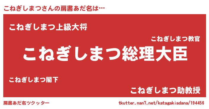 | 女子向けラノベタイトル風あだ名 | 『こねぎしまつ伯爵の花嫁』 |