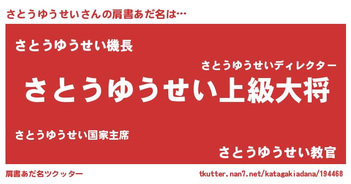 | ヒーロー風カッコイイあだ名 | 『仮面サトダー』『ネオサトウユウセイ』 |