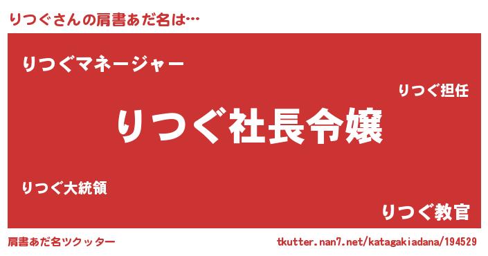 | 2回繰り返すあだ名 | 『りつりつ』『ずるずる』『りりつつ』 |