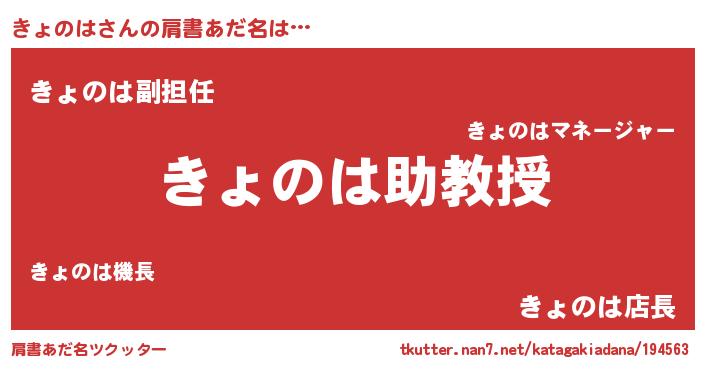 | ヘコむあだ名 | 『きょのは(笑)』『きょっふぃ~』 |