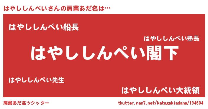 | ヒーロー風カッコイイあだ名 | 『最強戦士ハヤシシンペイ』 |