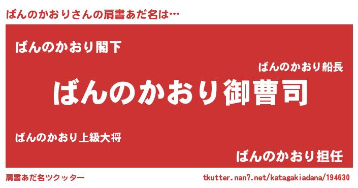 | 男性向けラノベタイトル風あだ名 | 『ばんのかおりの憂鬱』 |