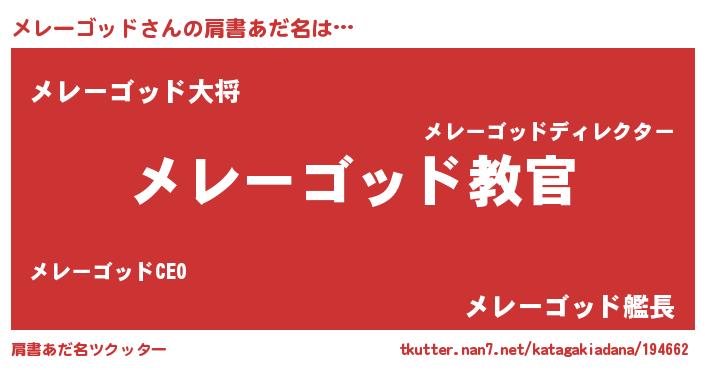 | 意味不明あだ名 | 『住所不定無職メレーゴッド(65歳)』 |