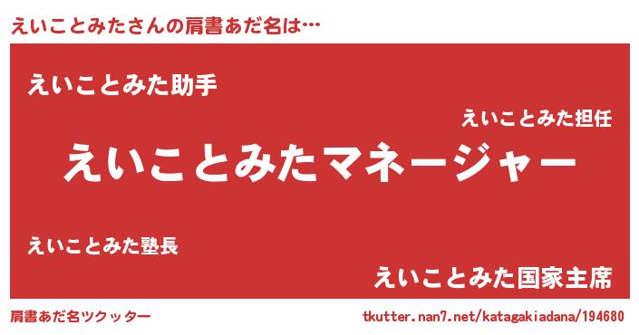 | 男性向けラノベタイトル風あだ名 | 『えいことみたに滅ぼされるだけの簡単なお仕事です』 |