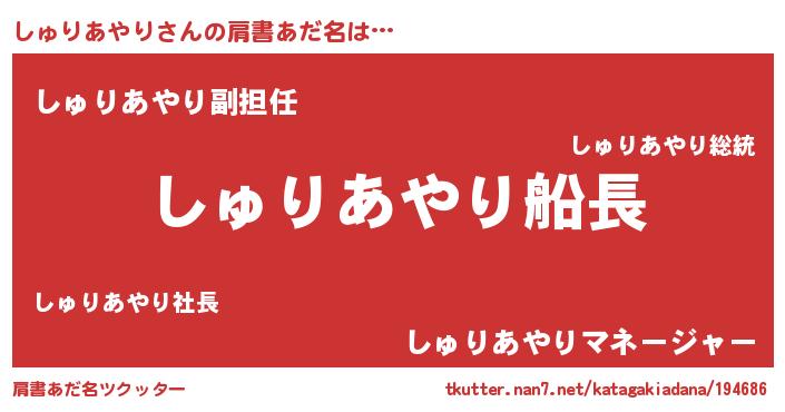 | ヘコむあだ名 | 『しゅりあやり(小並感)』『しゅっふぃ~』 |