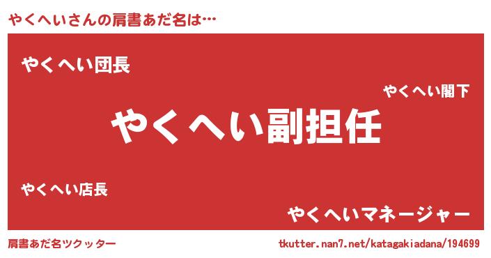| 意味不明あだ名 | 『永久保存やくへい』『自称やくへい』 |