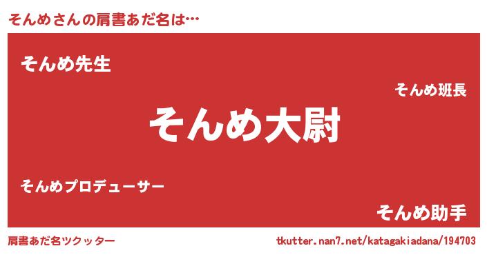 | ヒーロー風カッコイイあだ名 | 『ネオソンメ』『慈愛の使者そんめ』 |