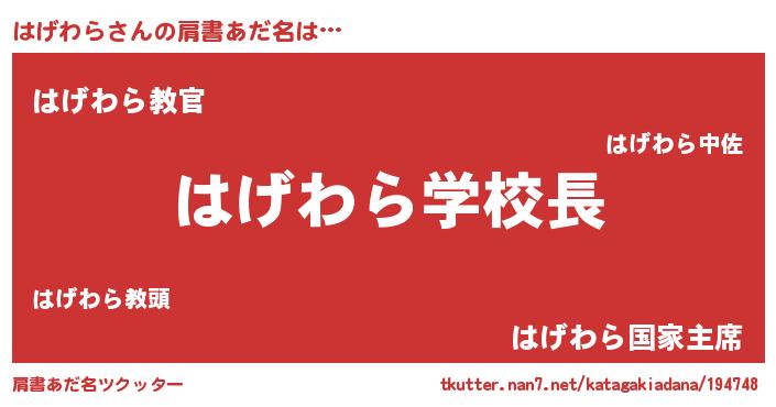 | ヒーロー風カッコイイあだ名 | 『慈愛の使者はげわら』『仮面ハゲダー』 |