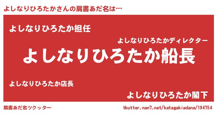 | 男性向けラノベタイトル風あだ名 | 『うちのよしなりひろたかが世界を掌握している!』 |