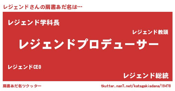 | 男性向けラノベタイトル風あだ名 | 『レジェンドに滅ぼされるだけの簡単なお仕事です』 |