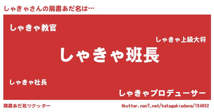 | 意味不明あだ名 | 『とにかく怪しいしゃきゃ』 |
