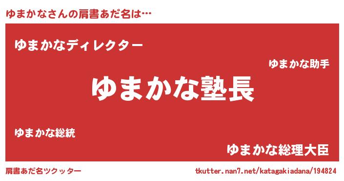 | 女子向けラノベタイトル風あだ名 | 『ゆまかな様がみてる』『闇のゆまかな』 |