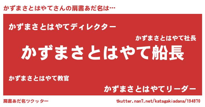 | 意味不明あだ名 | 『とにかく怪しいかずまさとはやて』 |