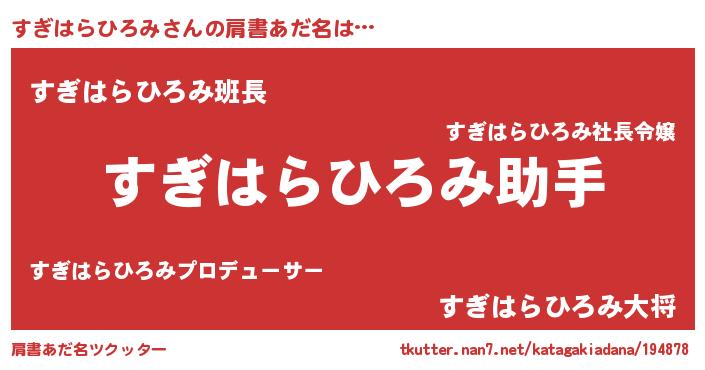 | 男性向けラノベタイトル風あだ名 | 『おまえをオタクにしてやるから、俺をすぎはらひろみにしてくれ! 』 |