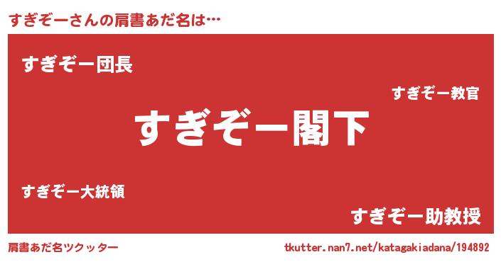 | 意味不明あだ名 | 『自称すぎぞー』『すぎぞーフォーエバー』 |