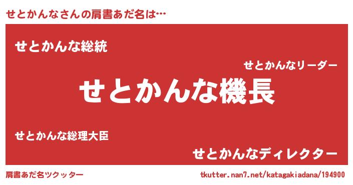 | 男性向けラノベタイトル風あだ名 | 『うちのせとかんなが世界を掌握している!』 |