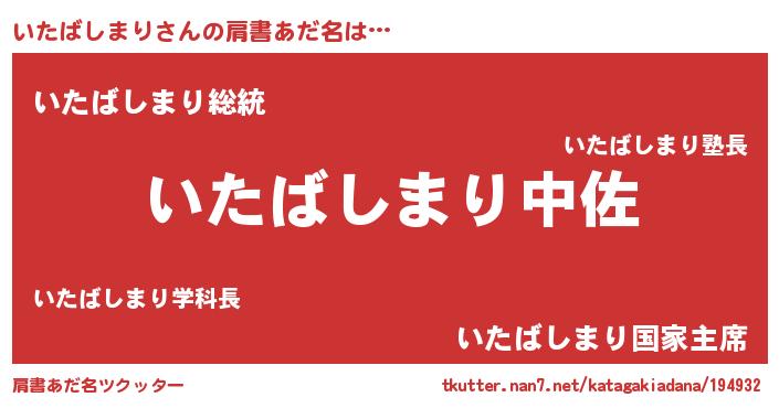 | ヒーロー風カッコイイあだ名 | 『最強戦士イタバシマリ』『天弓騎士イタ』 |