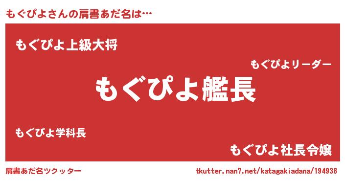 | 男性向けラノベタイトル風あだ名 | 『緋弾のモグピヨ』『モグピヨスレイヤー』 |