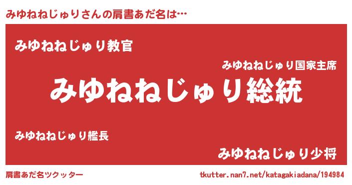 | 意味不明あだ名 | 『自称みゆねねじゅり』 |