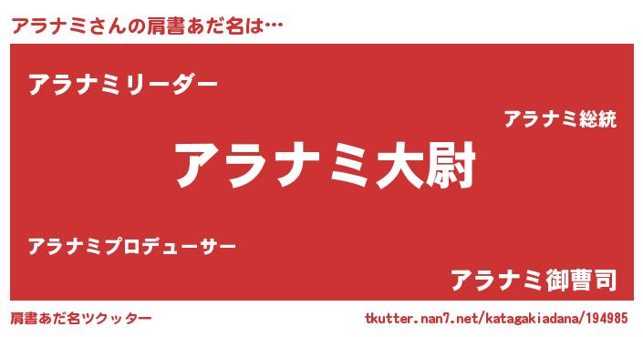 | ヒーロー風カッコイイあだ名 | 『暗黒騎士アラ』『スーパーアラナミ』 |