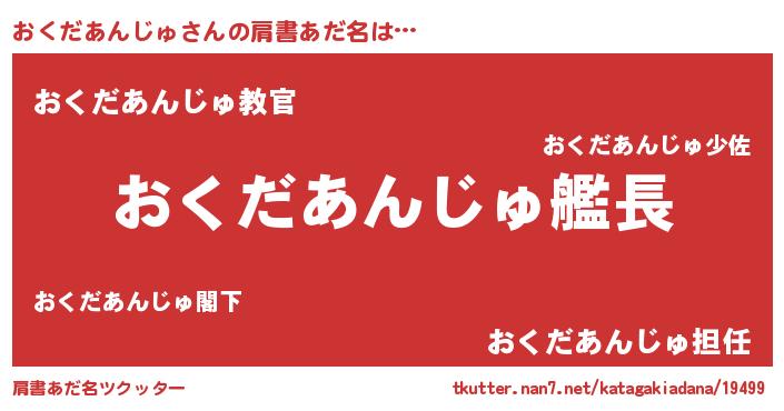 | 欧米人風あだ名 | 『おくだあんじゅ・ステッグマイヤー』 |