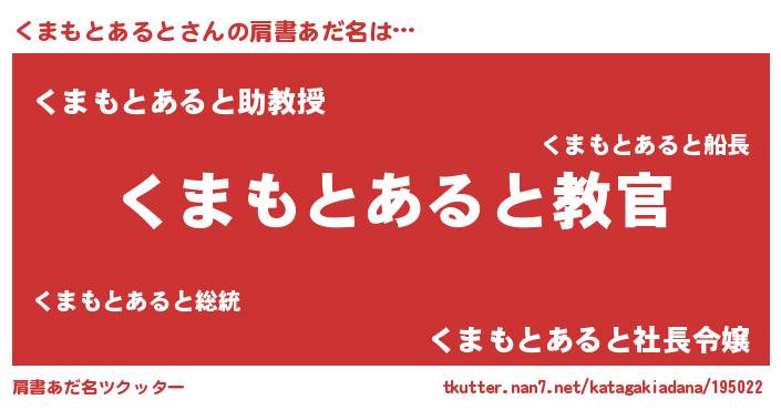| 男性向けラノベタイトル風あだ名 | 『魔弾の王とくまもとあると』 |