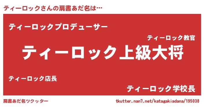 | ヒーロー風カッコイイあだ名 | 『正義の使者ティーロック』 |