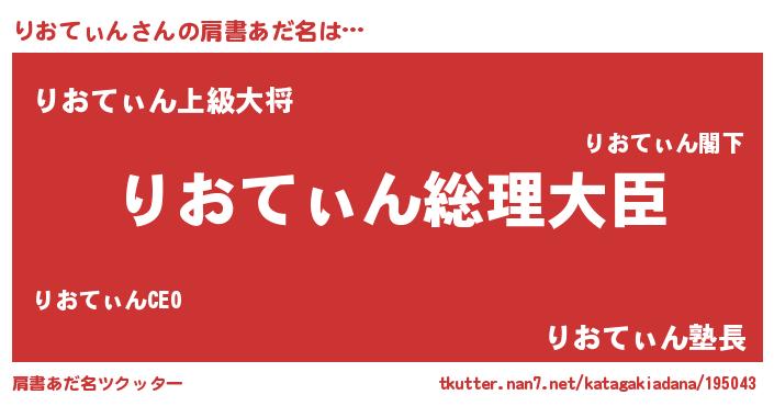 | 女子向けラノベタイトル風あだ名 | 『りおてぃんの婚約者』『闇のりおてぃん』 |