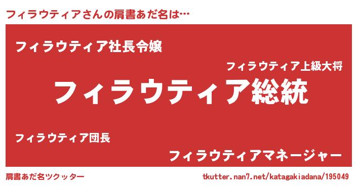 | 意味不明あだ名 | 『自称フィラウティア』 |