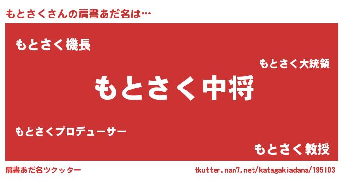 | 男性向けラノベタイトル風あだ名 | 『転生したらもとさくだった件』 |