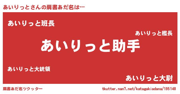 | 男性向けラノベタイトル風あだ名 | 『おまえをオタクにしてやるから、俺をあいりっとにしてくれ! 』 |