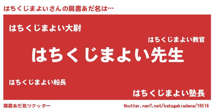 | 男性向けラノベタイトル風あだ名 | 『はちくじまよいという概念が存在しない退屈な世界 』 |