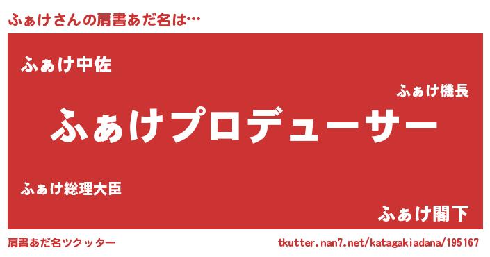 | 欧米人風あだ名 | 『アンジェラ・ふぁけ』 |