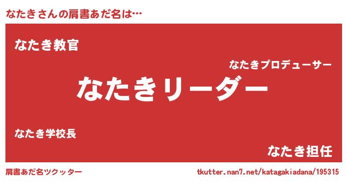 | ポケモン風あだ名 | 『ヒナタキ』『ナータイ』『ゼニナタ』 |
